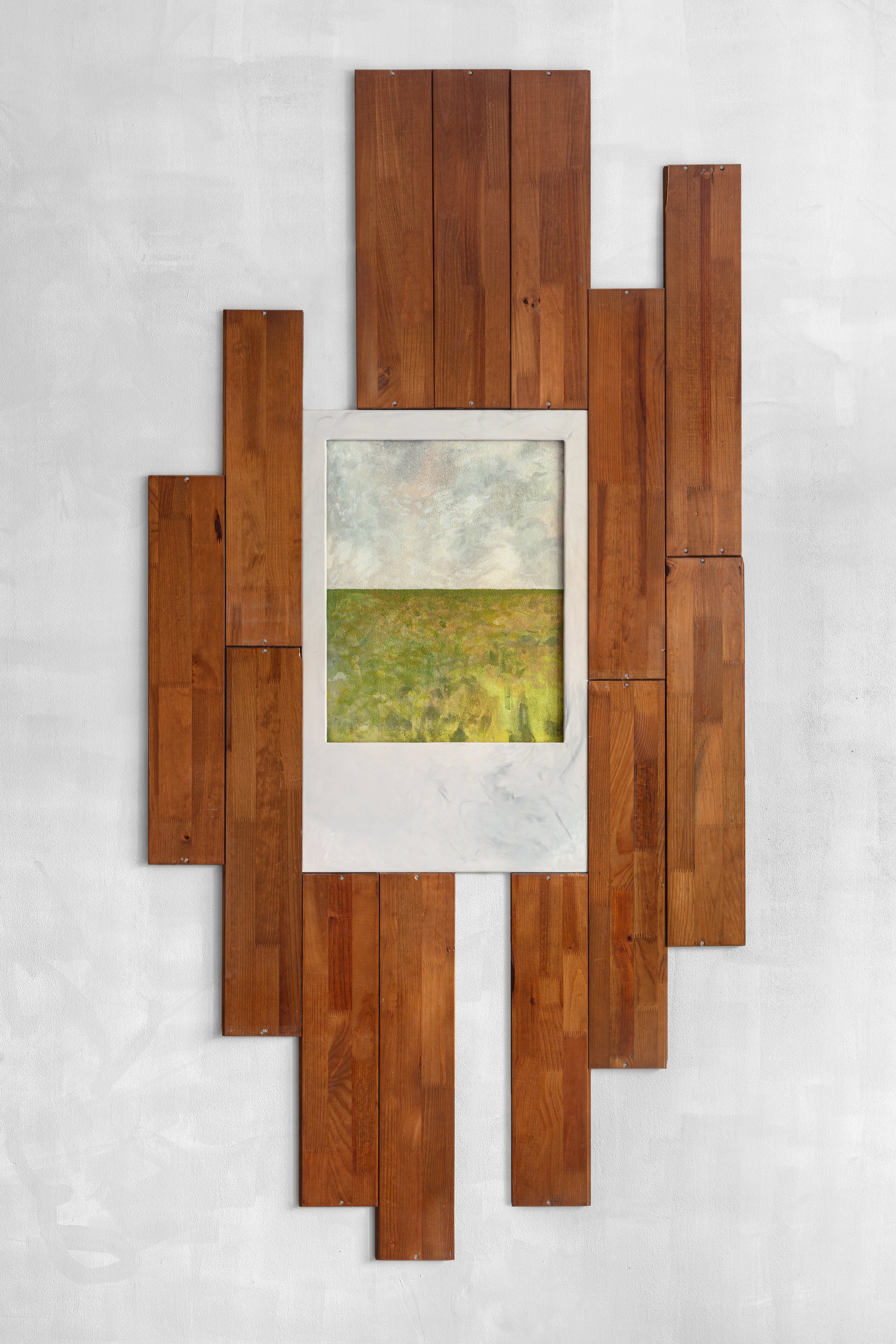 The wood-tile floor is never finished. I find a new square to paint a warmer shade, another to gloss over, and the next, I sand down. I might push it up the wall at some point, coat the ceiling, or have it roll out onto the street.